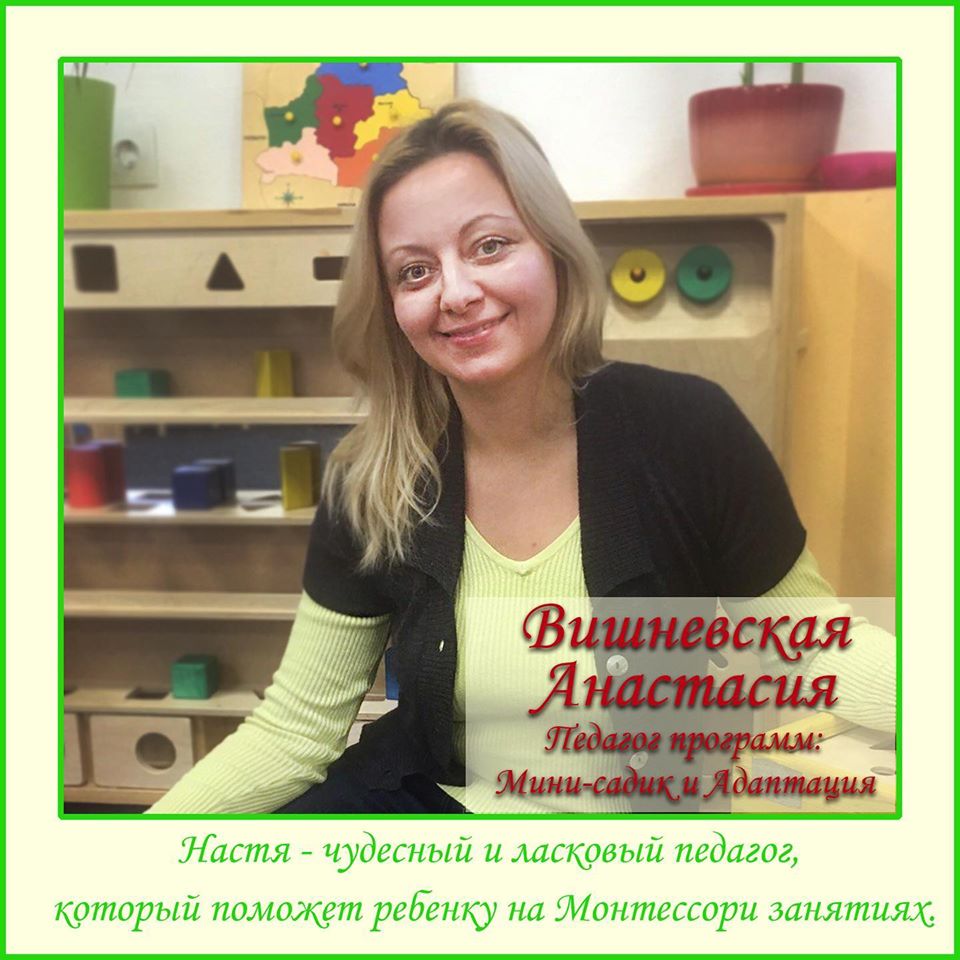 Мы работаем в комфортных условиях по авторской программе М. Монтессори (3- 6 лет), придерживаясь оригинальности метода. Высокое качество образования подтверждено дипломом МПГУ по специальности: "Монтессори-педагог (3-6)".